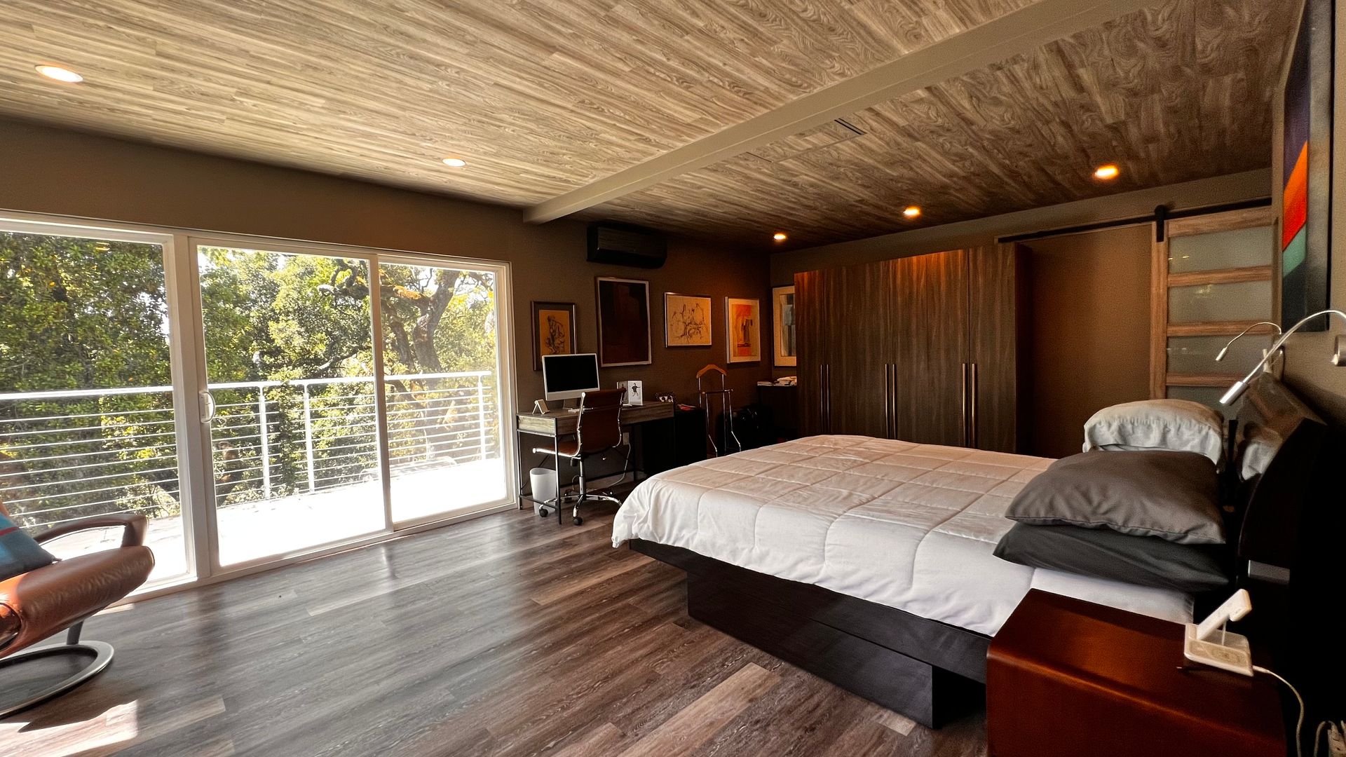 • Loft-style primary bedroom with expansive closet space and private balcony access